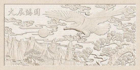 大展鸿图壁画中,大鹏展翅,高飞在群山、长城之上,祥云之间,气势十足,动作苍劲有力,具有奋发向前,划破长空意气,表现壮志凌云的志气。使用大展鸿图壁画装修在别墅上,有催功名、旺学业、利名声的作用。除此之外,还有勇往直前、青云直上、事业亨通等美好寓意。