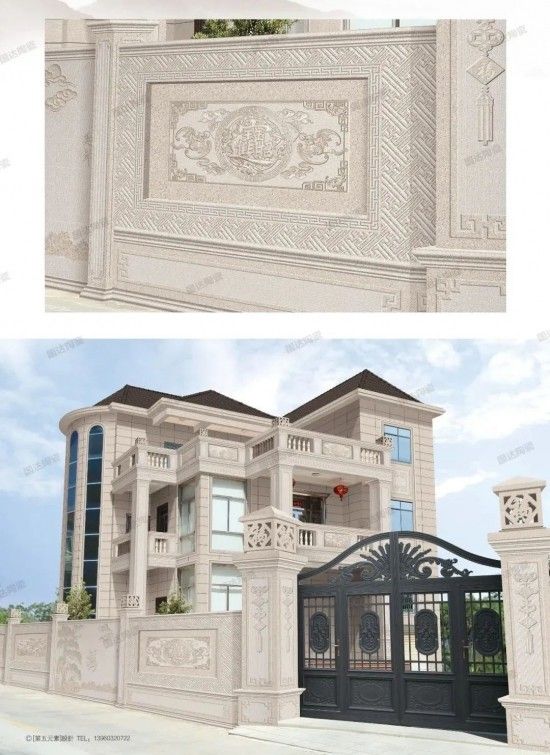 国达陶瓷瓷雕壁画不仅纹理自然逼真,造型美观大气,出色的产品设计还具有硬度高、易安装、耐候性强的特点,打造出富有中式美学的产品风格,让现代别墅更富有中国传统文化韵味。