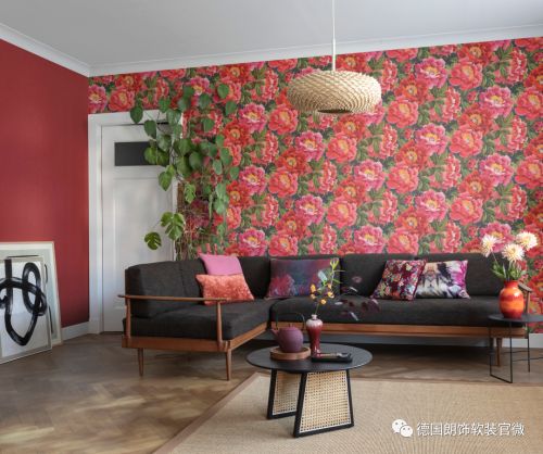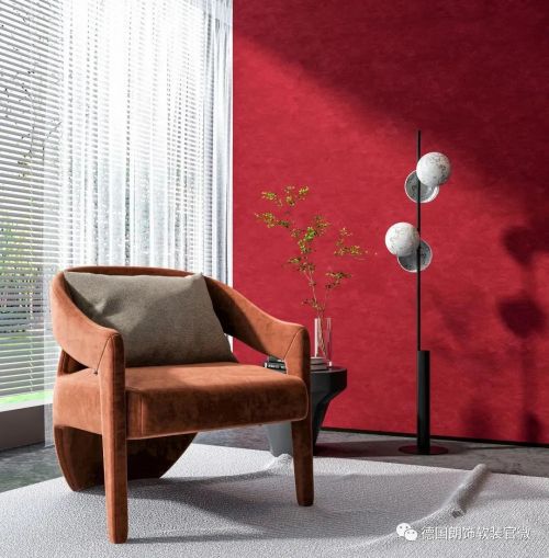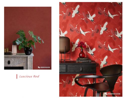 魅惑红,相比传统红色,更加突出用户感情,用颇具感染力的亮红色吸引消费者,以色系来拉近用户距离,增加沟通热情,朗饰设计师也将这一色系运用在墙面艺术中。