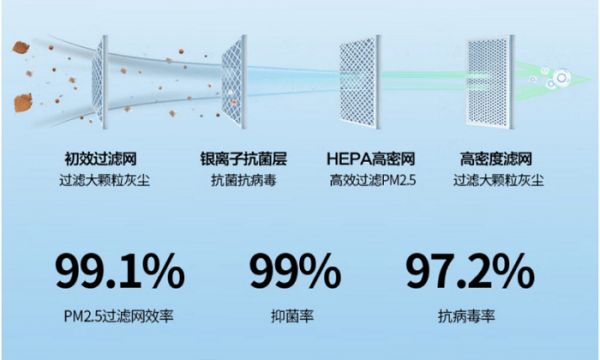 当遇到室外花粉尘土多或者雾霾天,如果直接从室外引入新风肯定是不太合适的,尤其是对于过敏体质的人群。所以为了确保新风足够干净健康,前两代TCL新风空调小蓝翼已经有四重HEPA高效滤网和内外机自清洁能力来双重保证。