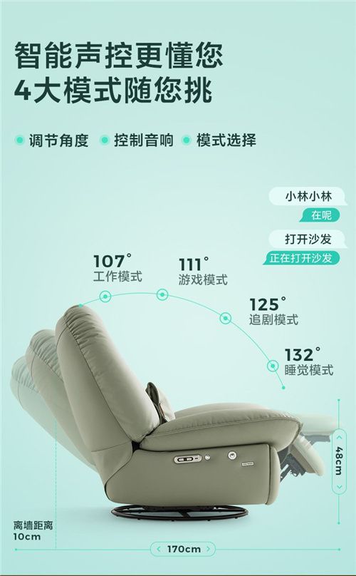 产品设计求变。与中国传统色IP跨界合作,推出明星产品,其新品发布的背后,更诠释了林氏家居始终瞄准“Z世代”的喜好与生活需求方式。以“怎么坐都可椅”为例,在配色方面,“怎么坐都可椅”提供桥下春波、杏仁黄、玄米茶白等四色选择,颇具传统诗意的颜色;在功能方面,“怎么坐都可椅”不仅是一把沙发,还能自动调节、可坐可躺,有USB插孔,有手机支架,有氛围灯,有蓝牙音箱,还有语音操控,这把沙发的功能与外形设计均基于大数据洞察,围绕年轻人宅家的追剧、休息、撸猫、带娃、电竞、办公等多生活场景的设计。