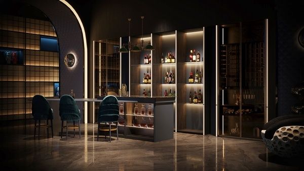 而在一些特殊的柜体上,HD吉吉对铝型材做了深度的开发,比如导台的圆弧围栏,电动隐藏酒柜内部的配件,都是做了绝对的创新。
