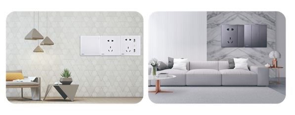 现代简约风追求时尚与潮流的同时也注重居室空间的布局与实用性,把颜色、材质、元素都进行简化,达到以少胜多,以简胜繁的效果。在开关插座的搭配上,色彩以简约的配色为主,可以选择颜色为灰色、白色等开关插座