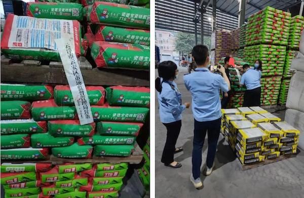 云浮云安市监局查处1个山寨窝点,查扣山寨瓷德宝瓷砖胶2820包及2300个包装袋。