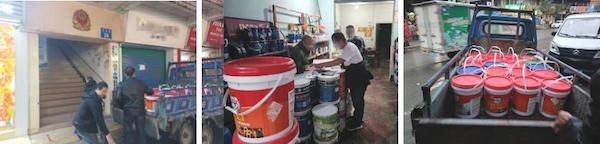 四川万源市监局查处1个门店,查扣山寨德高防水4桶。