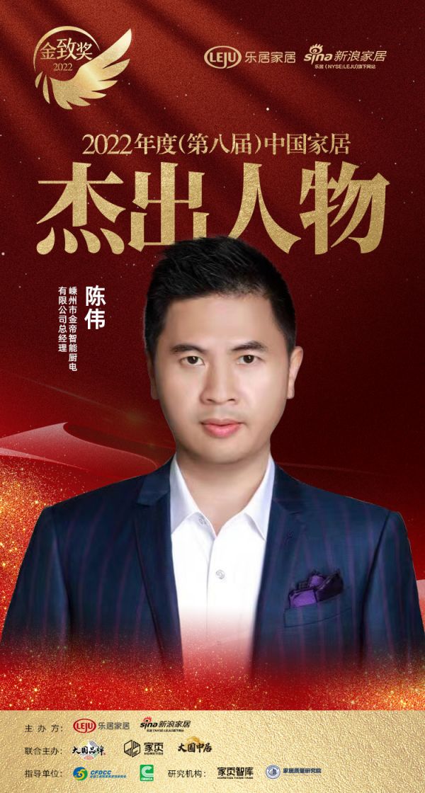 金帝智能厨电陈伟荣获「2022(第八届)中国家居杰出人物」称号