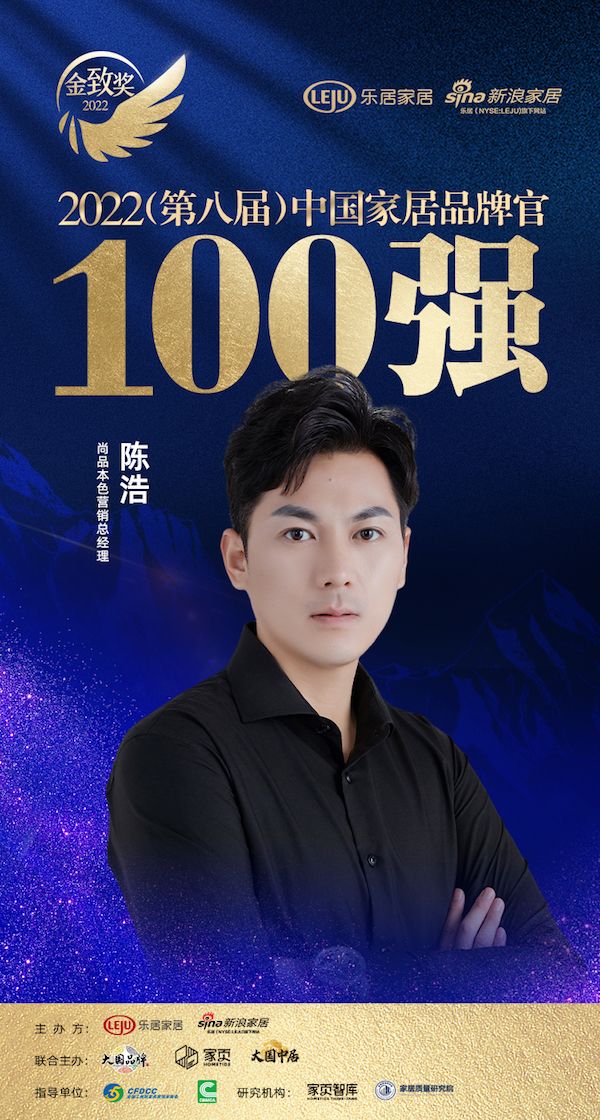 尚品本色陈浩荣获「2022家居百强品牌官」称号