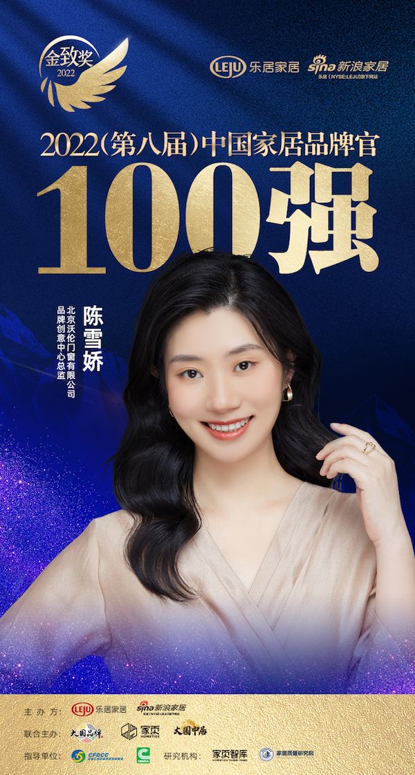 沃伦门窗陈雪娇荣获「2022家居百强品牌官」称号
