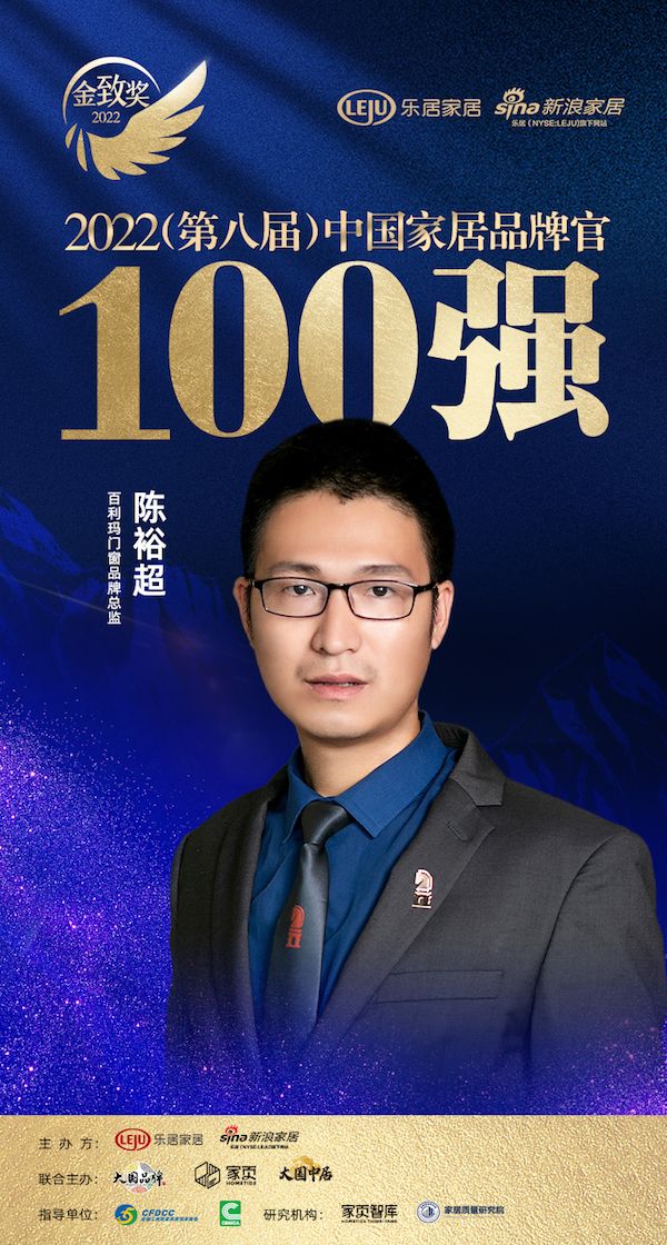 百利玛门窗陈裕超荣获「2022家居百强品牌官」称号