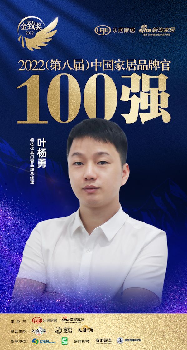 德技优品门窗叶杨勇荣获「2022家居百强品牌官」称号