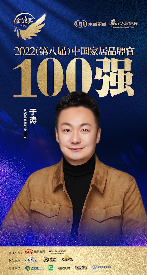 易殴思系统门窗于涛荣获「2022家居百强品牌官」称号