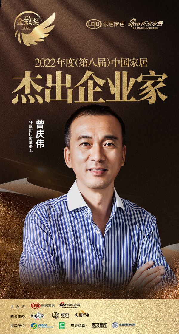轩尼斯门窗曾庆伟荣获「2022年度中国家居杰出企业家」称号