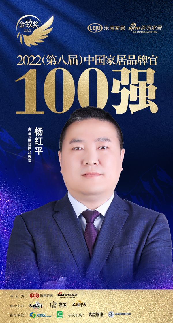 惠达卫浴杨红平荣获「2022家居百强品牌官」称号