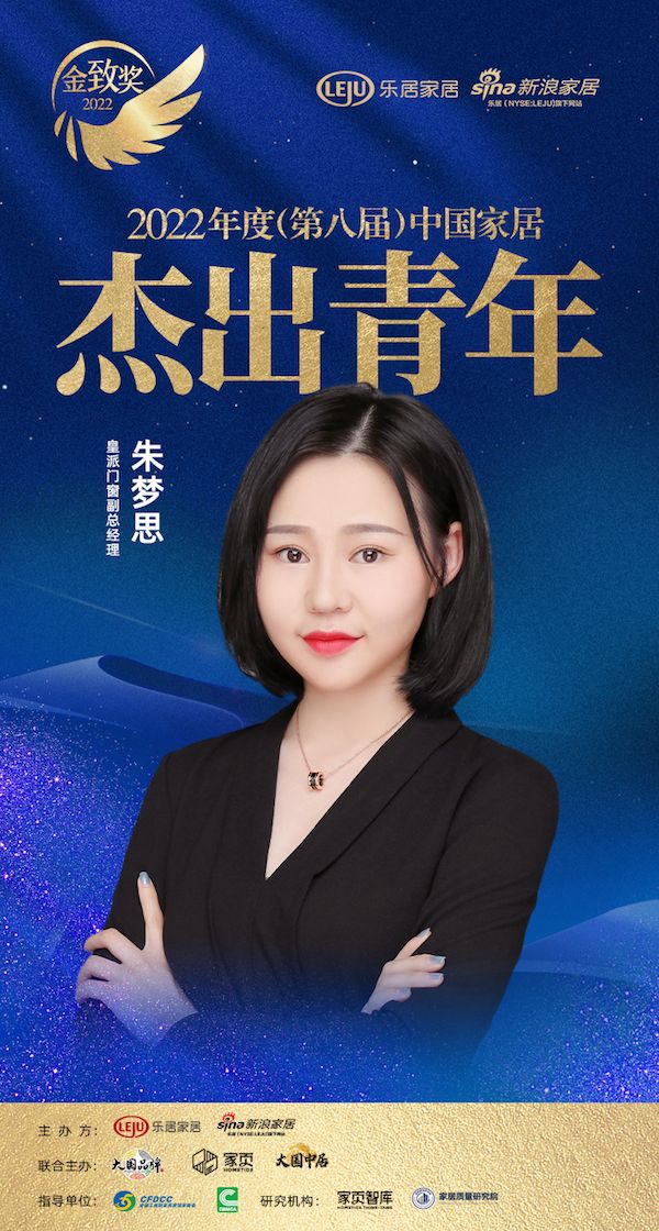 新浪家居讯 2022年12月26日,『趁势·再起——2022中国家居新时代盛典暨金致奖颁奖典礼』在云端盛大举行。由乐居家居主办,新浪家居承办的「2022(第八届)中国家居杰出青年」获奖名单正式揭晓,皇派门窗朱梦思荣获「2022(第八届)中国家居杰出青年」称号。