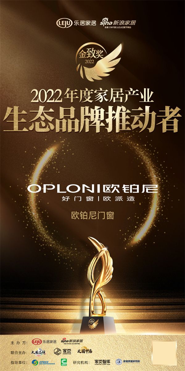 欧铂尼门窗荣获「2022年度家居产业生态品牌推动者」称号。