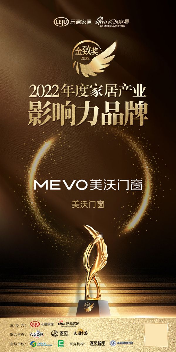 2022年12月26日,『趁势·再起——2022中国家居新时代盛典暨金致奖颁奖典礼』在云端盛大举行。美沃门窗荣获「2022年度中国家居影响力品牌」称号。
