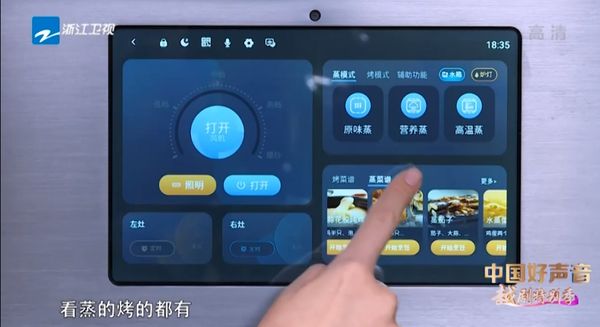 俞果通过智能烹饪导航轻松get清蒸鱼;潘锡丹爆炒时用手势即可智能调整风量,20m³/min大吸力瞬间不见油烟。做菜间隙,她们还体验了影音娱乐功能,使得厨房妙趣横生。语音智控、灶具定时、一键爆炒等功能更是让潘婉婉赞叹不已。森歌集成灶搭载4.0智能烹饪系统,不仅解决了三位好声音学员的做菜烦恼,还能上炖炒、下蒸烤,同步进行更省时间。智能烹饪,喊“森歌森歌”就能搞定!