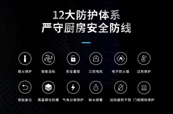 电子防火墙是集成灶内部的敏感的测温探头,一旦检测到内腔温度超过120℃,集成灶就能迅速做出断气处理,避免发生火灾。