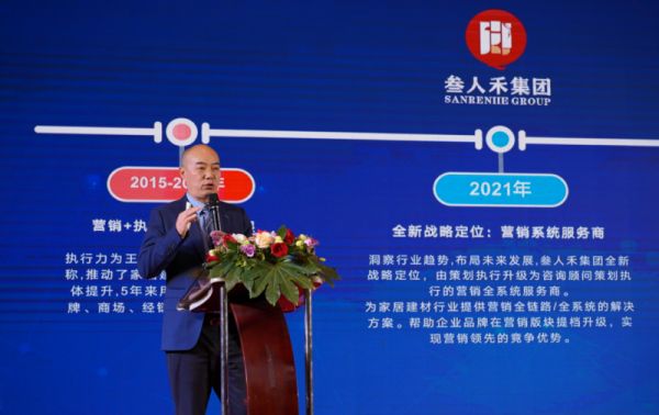 发布会现场,叁人禾集团执行总裁卿廷平回顾了叁人禾七年来的发展与成长。2015年至2020年,叁人禾强调执行力为王,以执行力领先在行业著称,推动了家居建材行业执行力的整体提升。这一阶段的五年,行业目睹了叁人禾用营销+执行驱动品牌企业、商场、经销商实现业绩增长。2021年,叁人禾集团全新定位营销系统服务商,洞察行业趋势,布局未来发展,叁人禾集团全新战略定位,由策划执行升级为咨询顾问策划执行的营销全系统服务商,为家居建材行业提供营销全链路/全系统的解决方案,帮助企业品牌在营销版块提档升级,实现营销领先的竞争优势。
