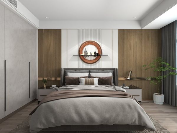 卧室的设计同样秉承轻奢风的理念。有着非常个性化设计,特别是奥华·月牙白格栅板和搭配的装饰画,最后呈现出的奢华效果,既有视觉享受,又能让人享受生活,身心都能得到满足才是最重要的。