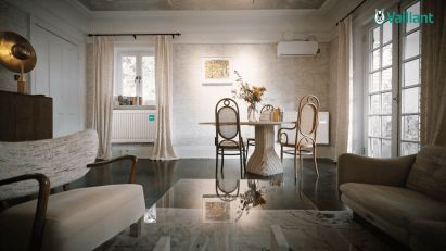 在上海的居住空间,一套完备的供暖系统很有必要,而且需要能够符合老洋房的装修条件,设计师想到了德国威能。威能诞生于1874年,140多年来,为世界各地的人们提供创新的采暖、生活热水等舒适系统解决方案。