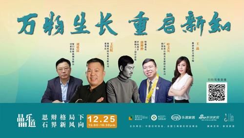 新浪家居携手中国(南安)水头国际石博会暨石设计周,于12月25日下午举办“《晶晶乐道》思辨格局下石界新风向论坛”,由新浪家居全国主编王晶对话第五届中国金钥石奖的获奖者:广东省石海美家建材有限公司董事长叶文友、郑州星田石业有限公司董事长王长虹、厦门富桥机械有限公司董事长刘勇富,以及特邀嘉宾开山设计创始人/设计总监郭坤仲,五位行业精英领袖人物齐聚新浪家居直播间,论道行业发展,描绘未来新图谱!