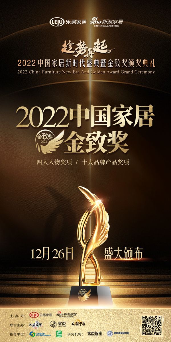疫情三年积累的澎湃动能,有望在明年实现井喷之势。在滚滚向前的趋势下,由乐居家居主办,新浪家居承办,大国品牌、家页智库、大国中居联合主办的『趁势·再起——2022中国家居新时代盛典暨金致奖颁奖典礼』在云端盛大开幕。