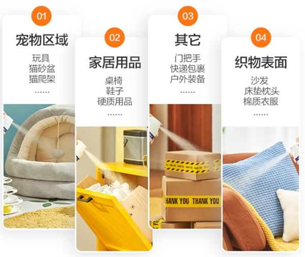 滴露消毒喷雾除了可以对快递消杀也可以对家居环境进行消杀,家中地板、沙发、床品等均可使用滴露消毒喷雾进行消杀,喷后无需擦拭,稍等片刻便能挥发。滴露消毒喷雾吸入无毒,可以用在儿童物品及宠物用品上,既能高效杀菌消毒又更加安全可靠。