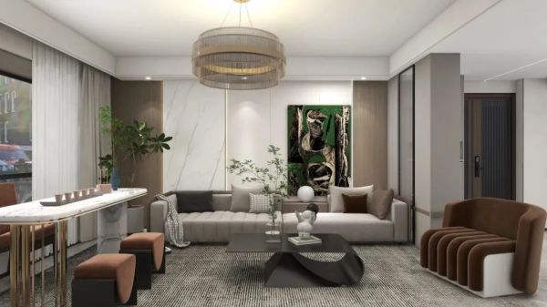 轻奢风格的核心即为“奢而不华”,以极简主义为基调,通过搭配金属、玻璃、皮革等元素进行装点凸显质感。它主要讲究的是精致、低调和内敛,迎合当下现代年轻人的审美趋向。