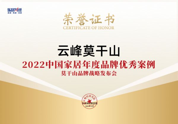 喜讯 ▏云峰莫干山荣获“2022中国家居年度品牌优秀案例”