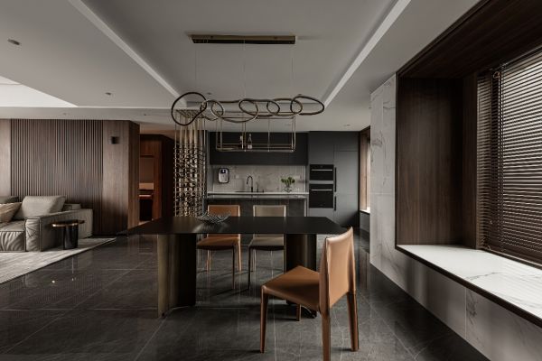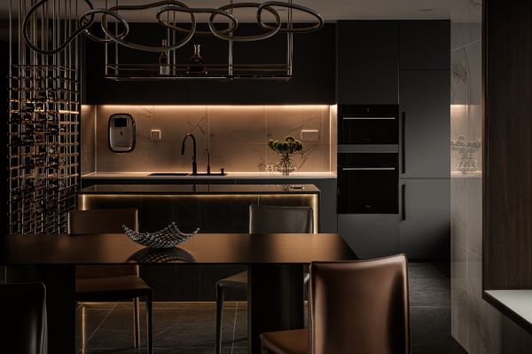 【陈欢】:分享一套今年上半年完成的项目,这是一套从买房阶段就开始介入案子,设计之初对于屋主一家的生活习惯、困扰、憧憬等做了非常详细的调研。房子位于东湖畔,在有限的面积里,除了要满足二孩家庭三代同堂的从容外生活外,更要赋予这个家庭更多财米油盐之外的浪漫情调和社交场景。通过空间的分割、比例的拿捏、材质的搭配灯光的营造……共同构筑精致利落、温暖亲近的家庭氛围。