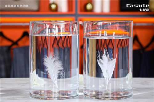 在光年平嵌系列新品的发布直播中,卡萨帝用羊毛玫瑰花、鸡蛋落水、羽毛对比三项测试中展示了“养护湿洗”能够洗高端西装的原因。