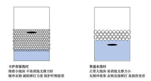 卡萨帝洗衣机通过系统算法升级实现了七维净护,能够对洗涤时间、温度、水位、转速、转停、甩干、结构等因素进行全方位精准控制。同时,卡萨帝还进一步通过对纤维具备保护功效的天然、亲肤的湿洗乳液,使洗衣机内充满云朵慕斯般的绵密泡沫,实现“水少泡沫多”的效果,大大减少了普通机洗衣物与筒壁间形成的摩擦力,有效保护西装形态的同时,对衣物纤维形成保护膜,避免西装面料出现损伤,更加保证了洗护健康。