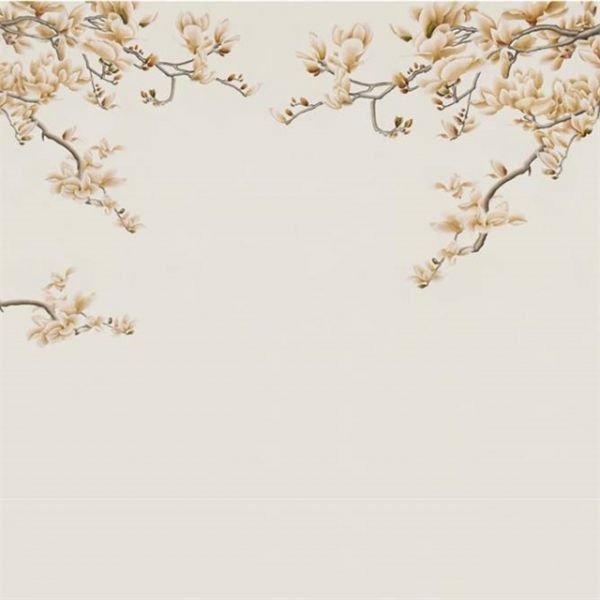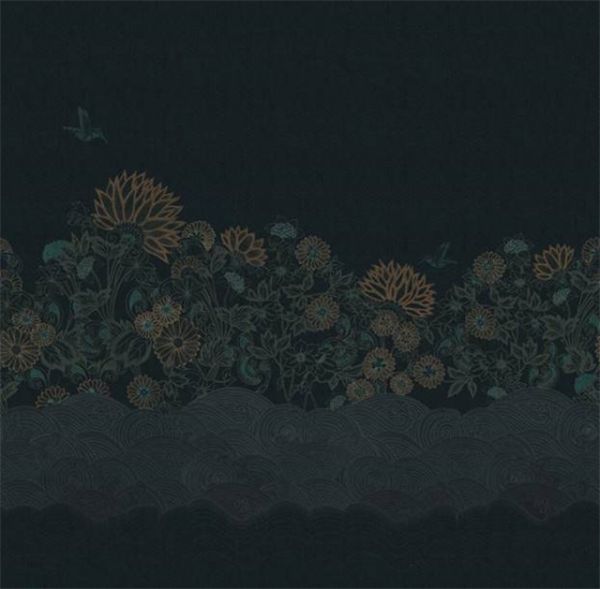 温婉的花枝、不明艳的图案、恬淡的远山远景