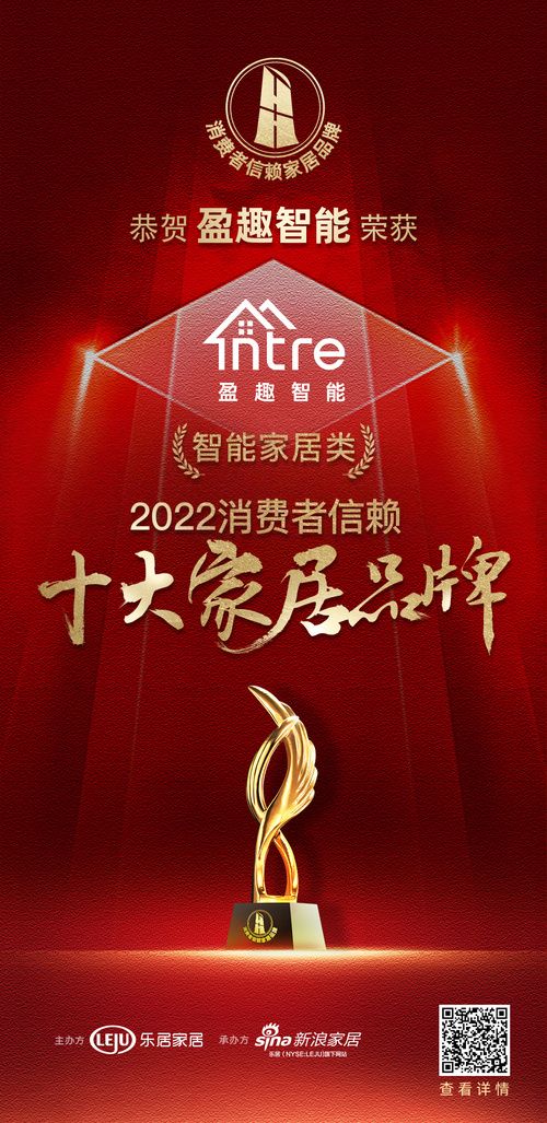 2022年12月26日,“趁势.再起-2022中国家居新时代盛典暨金致奖颁奖典礼”在云端盛大开幕。其中,颁发了“2022消费者信赖十大家居品牌”各品类颁单。盈趣智能荣登”2022消费者信赖十大家居品牌“智能家居类企业上榜品牌。