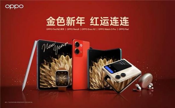 2022年12月29日-2023年1月12日,OPPO春节促销活动“年货节”正式启动,消费者用户可以同时在线上和线下享受多样化的新年优惠活动,并且为了提升“年味”,OPPO联合何方珠宝打造了兔年万事如意联名限定礼盒,金色和红色的碰撞,带来美好新年祝愿。