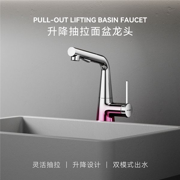 有感于传统面盆龙头配色乏味,出水功能单一,瑞摩将炫彩渐变技术融入多功能龙头,在赋予产品抽拉伸缩与高度调节功能的同时,实现卫浴美学设计的先锋创新。