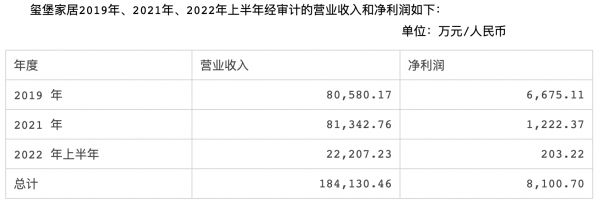 截至2022上半年报告,2020年、2021年及2022年上半年玺堡家居分别实现营业收入8.06亿元、8.13亿元,2.22亿元,同期净利润分别为6675.11万元、1222.37万元,203.22万元。