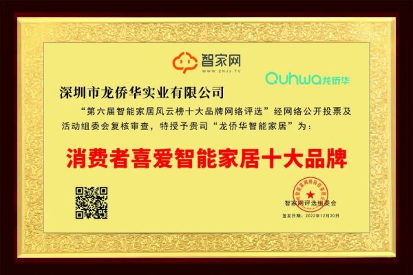 12月20日,由智家网主办的“第六届智能家居行业风云榜十大品牌评选活动”榜单重磅揭晓,经过广大网友投票和评委会评审,龙侨华智能家居荣获第六届智能家居行业风云榜智能家居十大品牌、消费者喜爱智能家居十大品牌两大奖项!