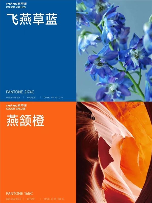 新的品牌LOGO更清晰、简洁,整体的设计趋向扁平化,凸显品牌形象国际化。以飞燕草蓝、燕颔橙作为品牌色,致敬流转千年的东方盛美。在从英文字体的粗度与大小提升品牌的包容性与识别度,还保留原有“A”的品牌识别视觉资产,利用“A”细微突出的特征传递皮阿诺全屋定制品牌的价值主张——忠于独创 生而不同。而以方正、加粗的中文字体,体现品牌历经岁月洗礼后的厚重与凝练,同时简化字体形态,使得更具细节与品质感。