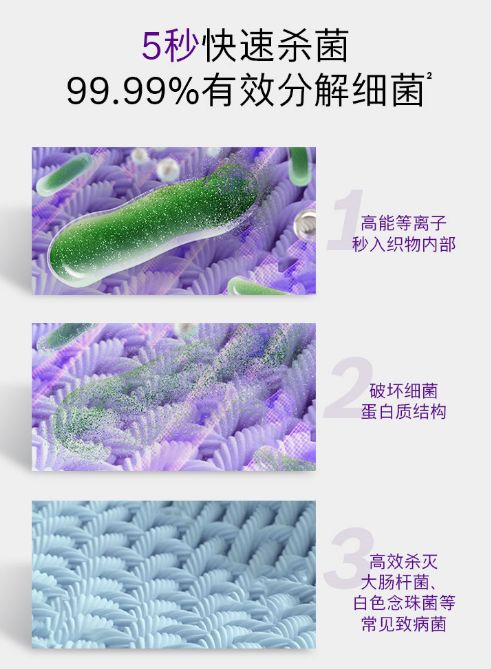 与其他气味香氛不同,在Plasma等离子技术加持下,产品采取纯物理除菌净味方式,等离子中蕴含的能量沿着纺织纤维流动,可快速分解干织物中的“细菌分子链”和“异味分子链”,并且分子链不会重组成原有结构,去除细菌和异味的同时也防止再生,全程不含化学添加,对人体、衣物面料的潜在危害更小,并且可以带上飞机、高铁,方便旅途除菌使用。