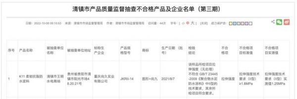 (“佳阳水卫士”品牌防水涂料抽检不合格)