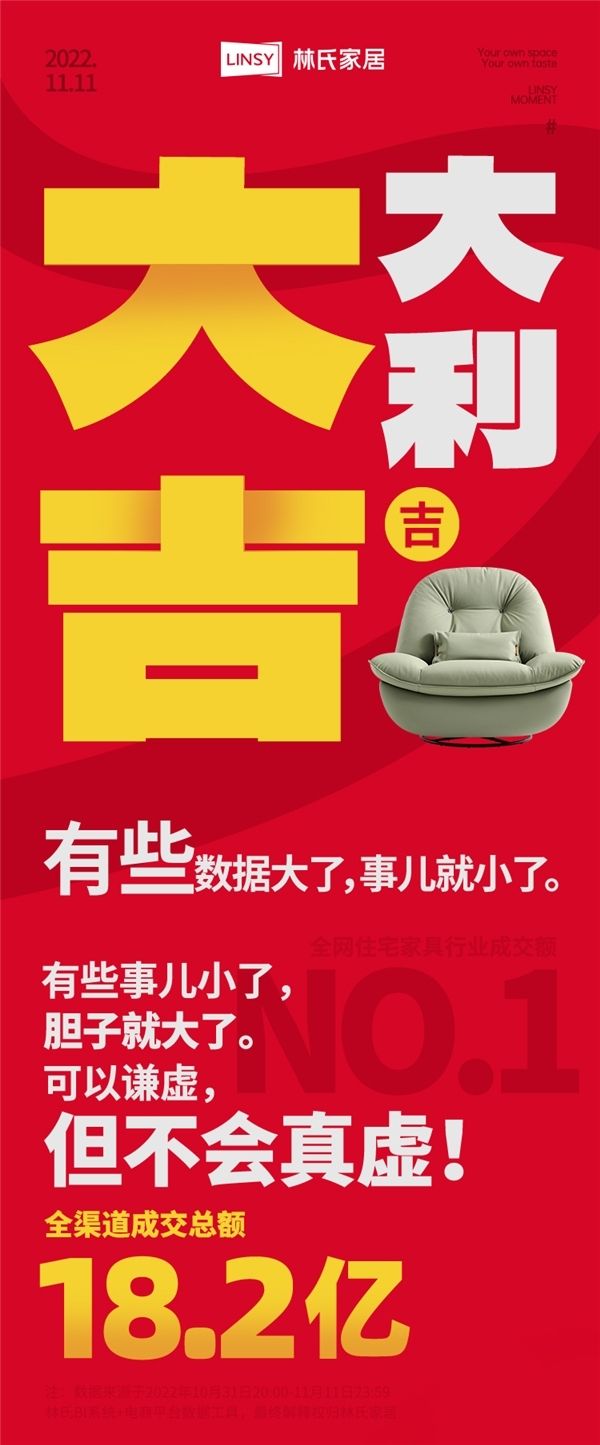 所以,尽管“双11”已历经了14年的考验,林氏家居在“双11”期间的总成交额达到18.2亿元,再次稳居全网住宅家具行业成交额TOP1。而林氏家居连续多年蝉联天猫“双11”住宅家具品类的第一名的成绩,并不是一次次的营销手段和爆款堆砌所能够达成的成就,而是品牌内核的硬实力所带来的必然。