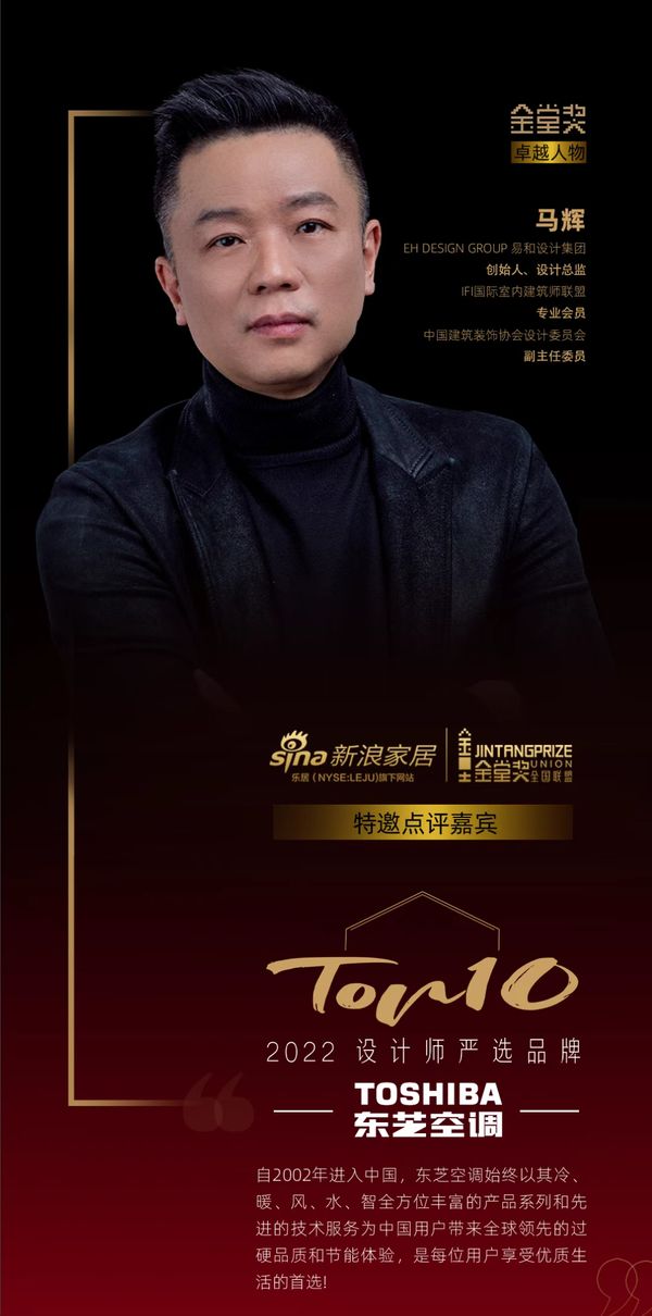金堂奖卓越人物、金堂奖特邀点评嘉宾、EH DESIGN GROUP 易和设计集团创始人、设计总监,IFI国际室内建筑师联盟专业会员、中国建筑装饰协会设计委员会副主任马辉先生对东芝空调表示祝贺并点评道: 自2002年进入中国,东芝空调始终以其冷暖、风、水、智全方位丰富的产品系列和先进的技术服务为中国用户带来全球领先的过硬品质和节能体验,是每位用户享受优质生活的首选!