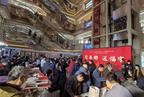 人们对书画展现出了极大的兴趣,现场人头攒动,求取字画之人络绎不绝。除了主会场十里河店之外,各大分会场也是热闹非凡,年味十足。一张张福字、一副副春联带着吉祥幸福的寓意送入千家万户。
