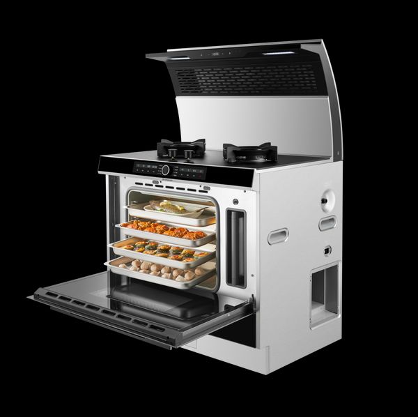 作为火星人蒸烤一体集成灶的升级款,这几款产品的亮点在于升级了双腔蒸烤,左边为45L专业蒸烤箱,右边为35L高效蒸箱,既可以蒸+烤,又可以两边同蒸,烹饪效率倍增,仅需半小时就能搞定12道菜,高效出餐。左右两腔体都有各自显示面板,通过中间旋钮调节时间、温度、模式。下置储存盒设计,收纳便捷不占地烹饪时。集成设计和超宽置物台细节设计,是空间紧凑小户型厨房家庭的心头好,极具美感的造型设计满足对颜值有要求的用户,优越的性能配置满足高要求的消费人群,真正解决了用户的诸多痛点和实际场景需求。