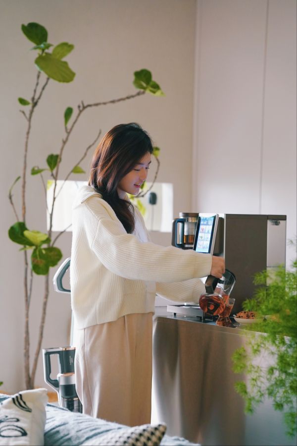 打开碧云泉萃取/茶艺净水机,萃取一杯陈皮红茶,陈皮清肺润喉,排毒祛湿。