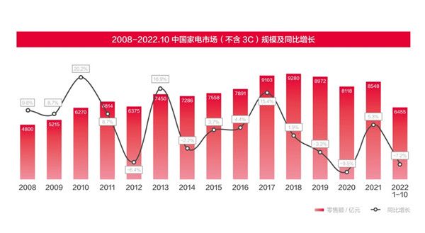 中国家电行业经过多年高速发展后,随着普及率提升,市场接近饱和,用户需求从增量转向换新驱动。在整体市场横盘整理背景下,家电下沉市场潜力巨大。GfK中怡康预测,2022年我国下沉市场中的家电规模达到2900亿元,同比增长超过14.2%,与整体市场同比7.0%的下降形成鲜明的对比。