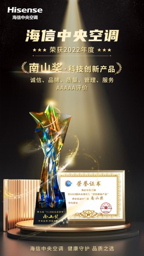 2022“南山奖”评选揭晓 海信中央空调净化实力再获认可