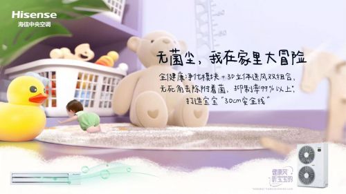 在将品牌实力不断转化成落地方案的过程中,海信中央空调始终围绕人的需求而求新,让中央空调真正成为有温度、有情怀的“空气家”。譬如,海信中央空调一直关注儿童的呼吸健康。针对地板上方 30cm 这一儿童活动空间容易聚集甲醛、病菌的问题,通过全健康净化模块配合无死角立体送风,保证室内空气的全方位净化,为宝宝打造健康安全线。